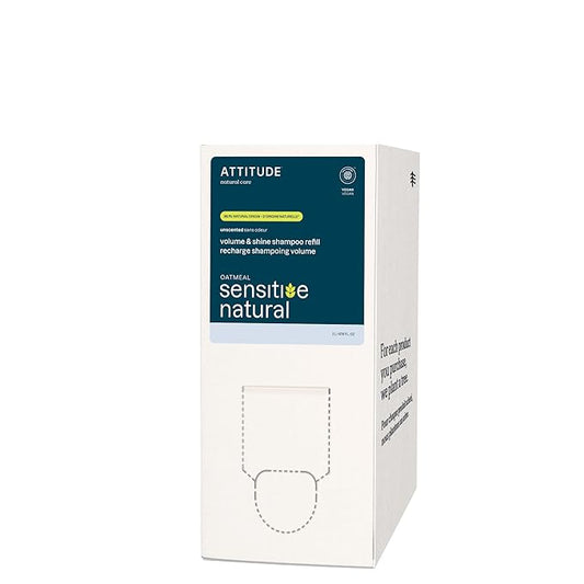 ATTITUDE Volume and Shine Hair Shampoo for Sensitive Dry Scalp, EWG Verified, Soothing Oat, For Thin Hair, Naturally Derived Ingredients, Vegan and Plant-Based, Unscented, Bulk Refill, 67.6 Fl Oz