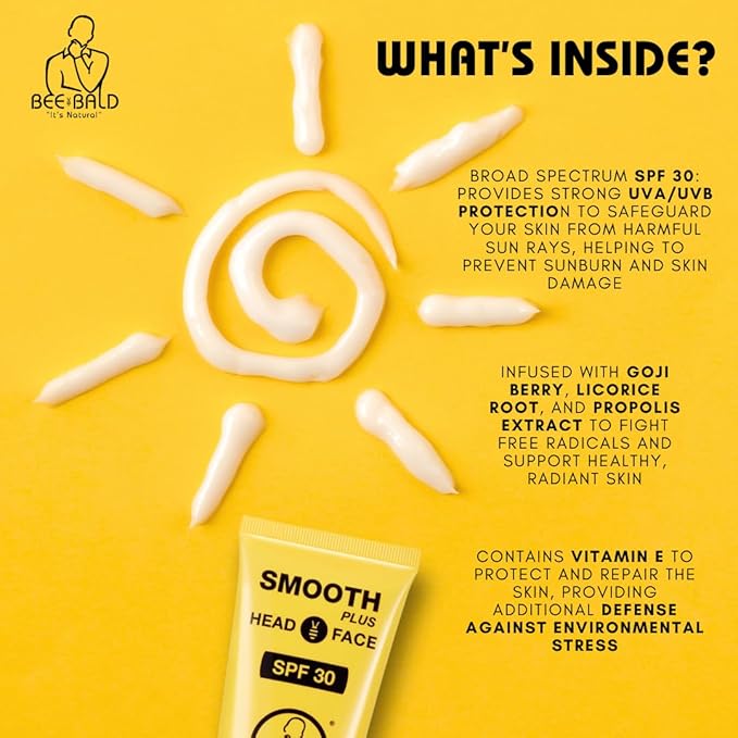 - SPF 30: Keep your head in the game and out of the sun. Bee Bald SMOOTH PLUS shields you from harmful UVA/UVB rays with SPF 30 sun protection.