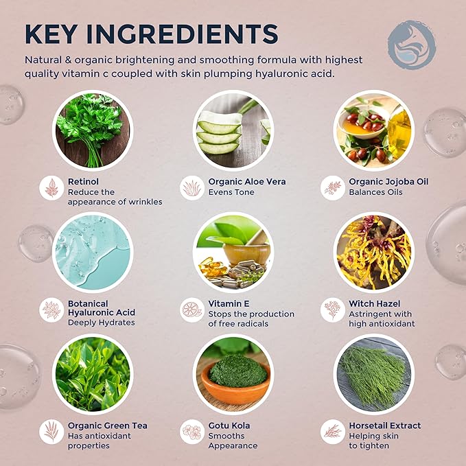 - Special Ingredients : Hyaluronic Acid, Organic Jojoba Oil, Horsetail Extract, Gotu Kola
