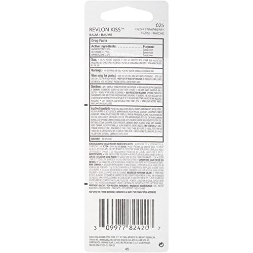 Revlon Kiss Tinted Lip Balm with SPF 20, Hydrating, Flavored, Infused with Natural Fruit Oils, 025 Fresh Strawberry, 0.09 oz