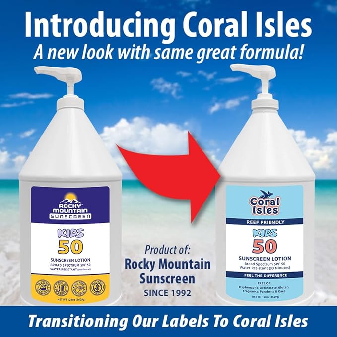 KIDS Rocky Mountain Sunscreen SPF 50 Gallon Sunscreen Lotion | Broad Spectrum UVA/UVB Protection | Hawaii 104 Reef Act Compliant (Oxybenzone & Octinoxate Free) | Water Resistant 80 Min. | (128 Fl Oz)
