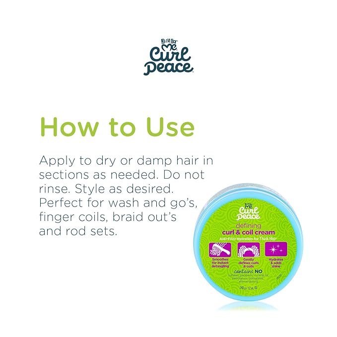 - PROVEN HAIR CARE - Our lightweight Just for Me Curl Peace Defining Curl & Coil Cream nourishes & defines kids' kinks, coils and curls without weighing them down. The unique blend of ingredients provides balanced hydration for shiny curls that pop.