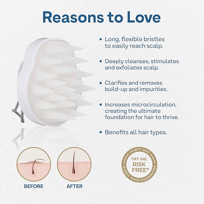 - Deep Cleansing Power: This scalp massager brush unclogs hair follicles by removing product build-up and impurities—creating a refreshed, balanced scalp environment for healthier-looking hair.