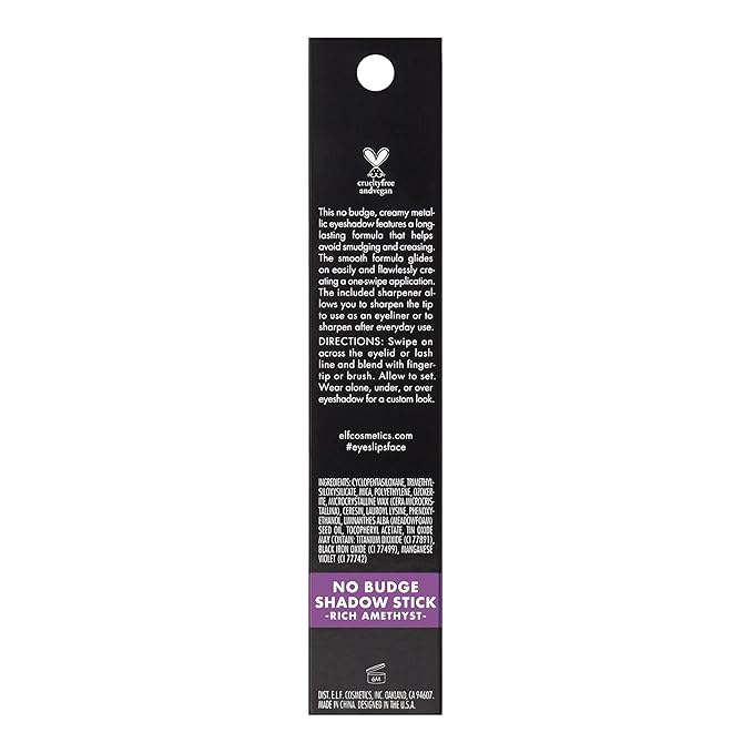 e.l.f. No Budge Shadow Stick, Longwear, Smudge-Proof Eyeshadow, Twist-up Design & Built-in Sharpener, Vegan & Cruelty-Free, Rich Amethyst