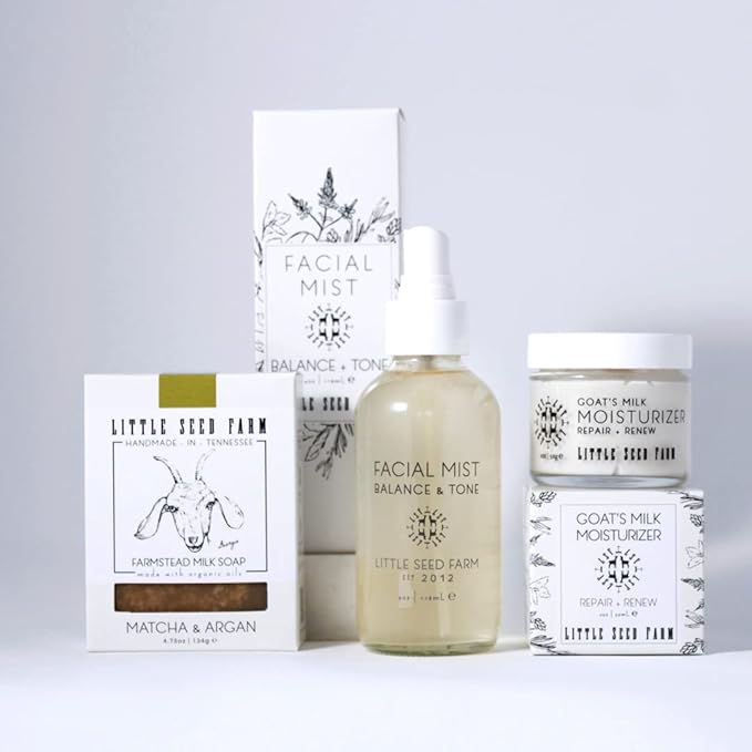 Little Seed Farm Organic Goat’s Milk Soap – 3 Pack of Matcha & Argan Facial and Body Bars– Natural, Handmade, Cruelty Free – Calming and Hydrating for Dry, Mature and Combination Skin, Net Wt. 4.75oz