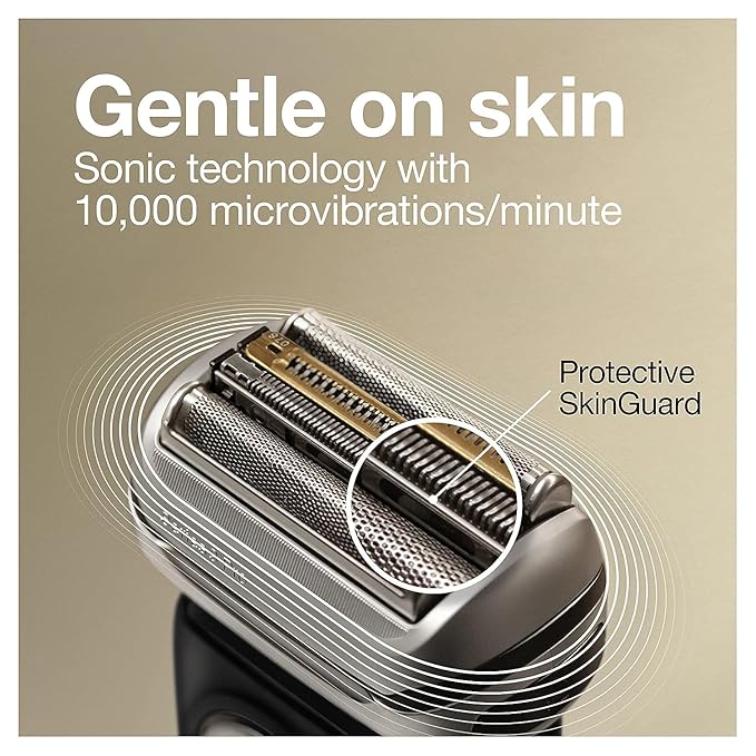 - More efficient** & gentle: the innovative ProLift trimmer and Braun’s unique Sonic Technology help to shave up to 10% faster**, for a gentle shave. **vs. Previous Braun Series 9
