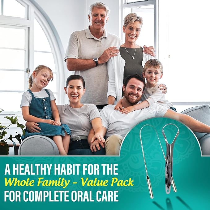 - STAINLESS STEEL TONGUE SCRAPER FOR DURABILITY: Made with 420 medical grade steel, the tongue scraper is rust-proof and stain-resistant, helping you clean plaque gently for an improved sense of taste.