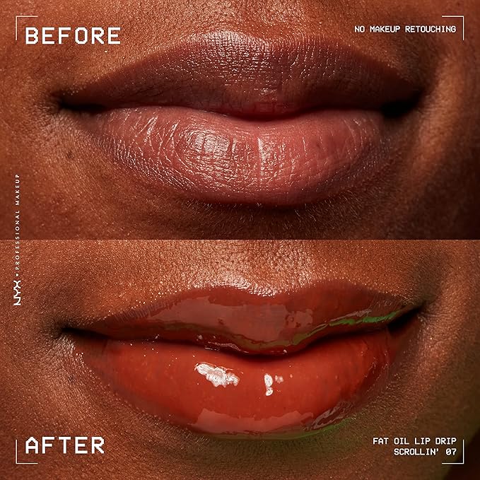 NYX PROFESSIONAL MAKEUP Fat Oil Lip Drip, Moisturizing Lip Oil Gloss, Vegan Tinted Formula, Up to 12 HR Hydration - Scrollin' (Deep Caramel)