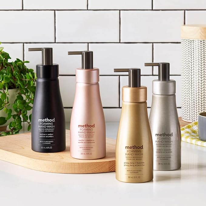 Method Premium Foaming Hand Wash, Vetiver + Amber, Reusable Black Aluminum Bottle, Biodegradable Formula, 10 fl oz (Pack of 3)