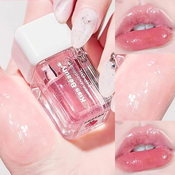 Fruit Pearlescent Plumping Lip Oil, Lip CarePearl & Shimmer Mini Lip Gloss Kit, Lip Care Hydrating Lip Gloss Tinted Lip Balm, Long Lasting & Nourishing Lip Glow Oil, Non-sticky Fresh Texture (Peach)