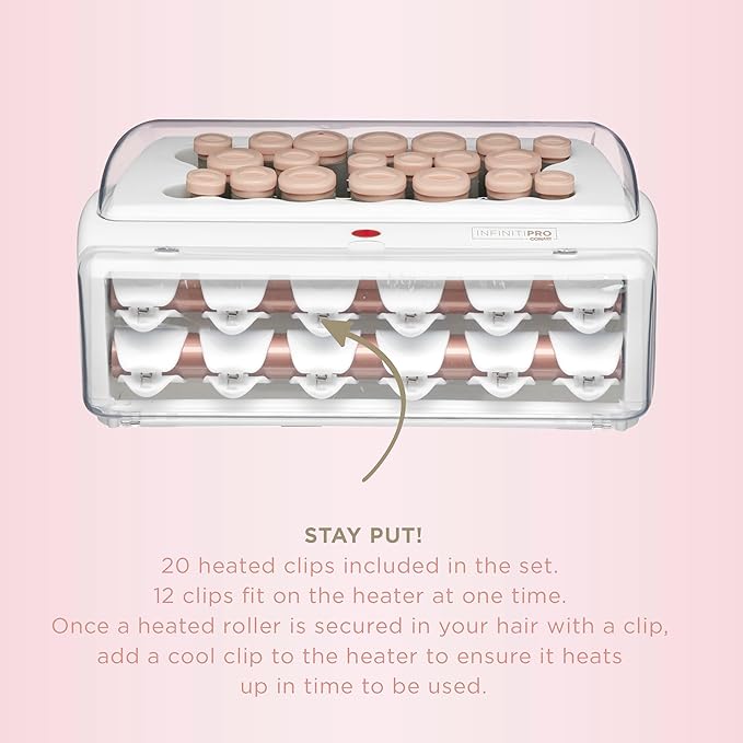 INFINITIPRO BY CONAIR Ceramic Flocked - Hot Rollers for Long, Medium, and All Hair - Hair Curler - Hair Roller Clips Included - 1 1/4-inch, 1-inch, and 3/4-inch Rollers