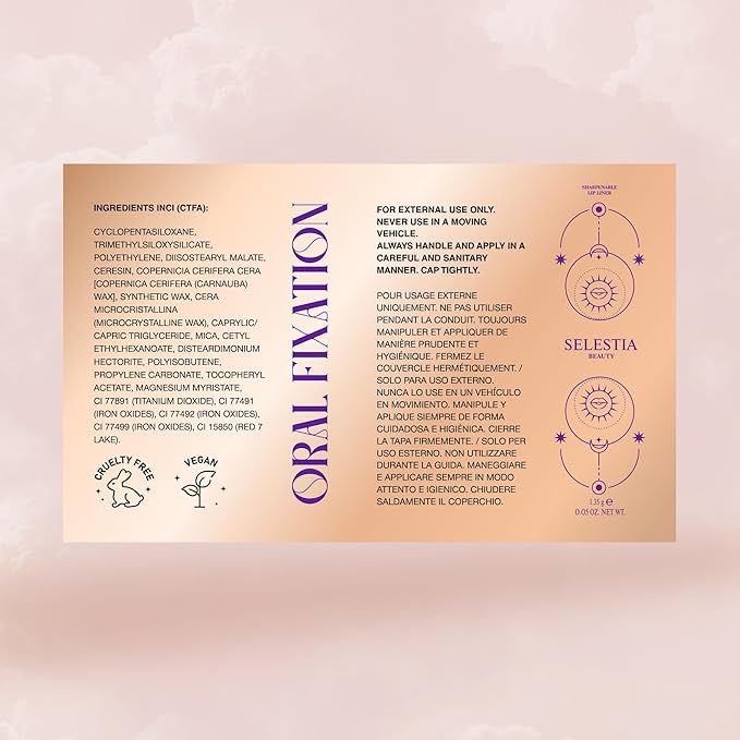 - Long-Lasting and Non-Drying Formula: The Oral Fixation lip liner has a long-lasting formula that won't dry out your lips. It carefully prevents your lipstick or lip gloss from smudging or feathering throughout the day.