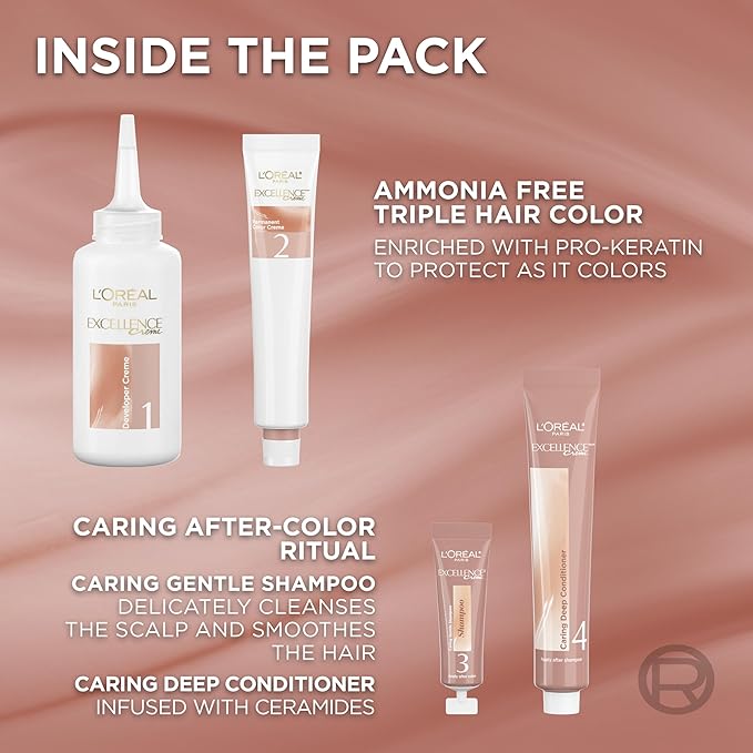 - Triple Care Color Routine: Our permanent hair dye offers an ammonia-free Triple Care Color routine. Our hair dye kit includes a Caring Gentle Shampoo and Caring Deep Conditioner infused with ceramides that cleanse the scalp and nourish hair
