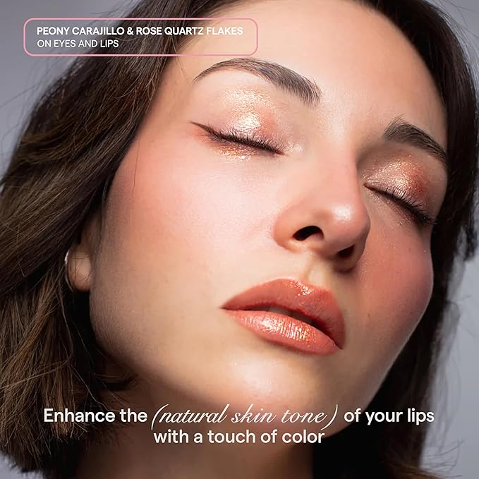 SARELLY CREATIVO LAB | Makeup Set Clear Lip Gloss + Shimmer and Shine | Beauty Vegan Skincare Make Up - Trending Lip Makeup | Peony Carajillo & Rose Quartz flakes