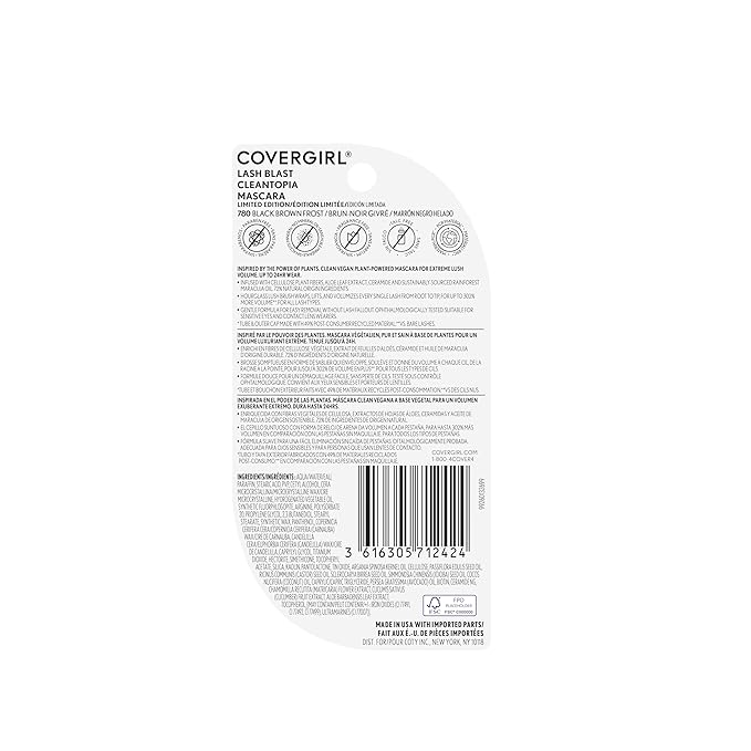 CoverGirl Lash Blast Cleantopia Mascara - Volume & Lengthening, Black Brown Frost, Vegan, Clean, Sensitive Eyes, No Smudge, 0.32oz