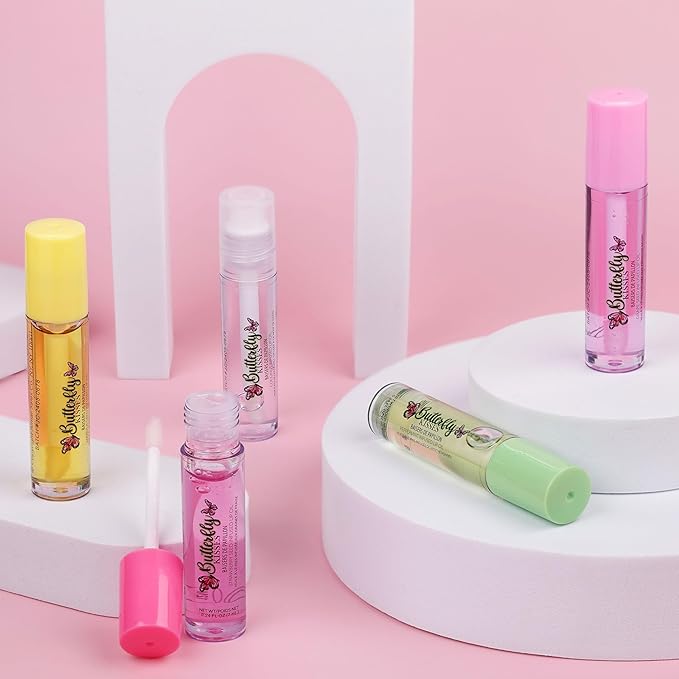 5pc Lip Oil Set - Butterfly Kisses Lip Oils, Lip Healing Lip Oil Collection with Precision Applicator Wand for Everyday Lip Care and Lip Repair (BUTTERFLY KISSES)