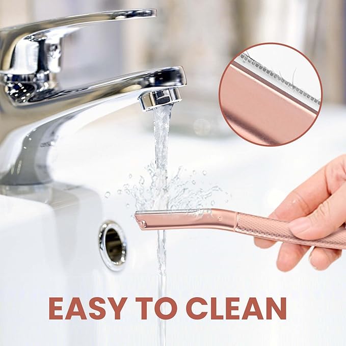 - 【Dermaplaning Tool for Face & Eyebrow Razor】Experience salon-quality results at home with our premium dermaplaning tool. This versatile razor gently removes dead skin cells, peach fuzz, and fine facial hair, revealing instantly smoother, brighter skin. Plus, it doubles as an eyebrow razor for precise shaping, helping you define your arch and eliminate stray hairs.