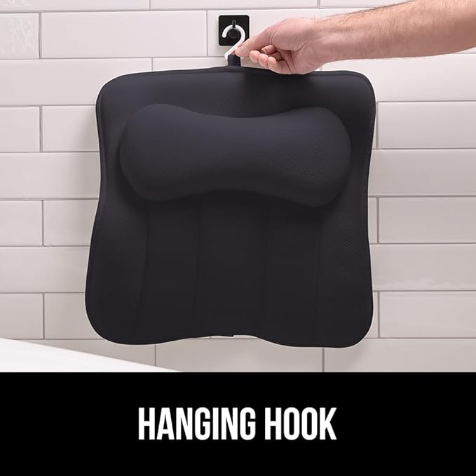 GORILLA GRIP Mesh Bath Pillow for Tub, 6 Powerful Suction Cups, Oversized Headrest with Breathable FlexComfort Technology for Neck, Head, Back Support, Luxury Machine Washable Bathtub Must Haves Black