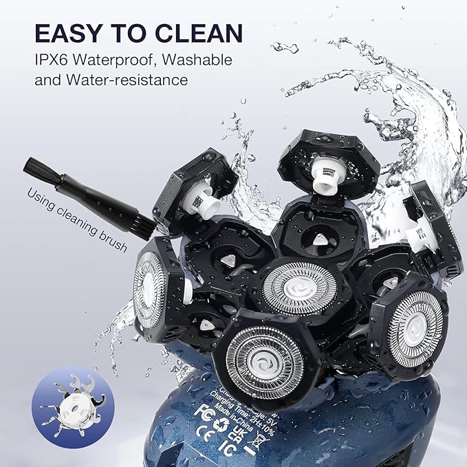 - Waterproof for Wet and Dry Use: For a closer, smoother shave, we recommend applying shaving foam to soften the hair beforehand. The entire shaver is IPX6 waterproof, allowing for both wet and dry use and easy cleaning under running water