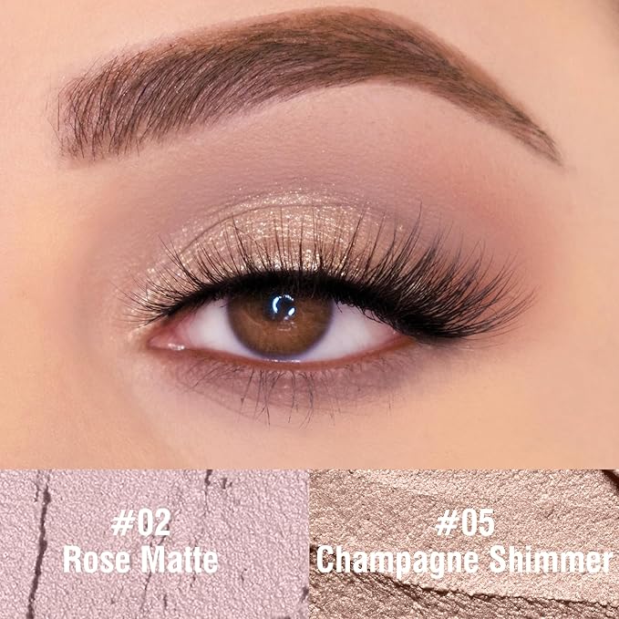 FV Waterproof Eyeshadow Stick Duo,Long-Lasting Cream Eye Shadow Makeup Sets, High Pigmented Eyeshadow Pencil with Matte & Shimmer Finish, Natural Look (Rose & Champagne)