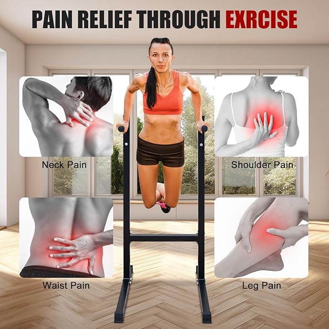 - ✔ DURABLE & STABLE:Our parallel bars is made of Iron with a double-layer black powder-coated finish, can support up to 500 lbs of weight. The base of the dip bars comes with rubber feet to prevent slipping and protect the floor from scratches.